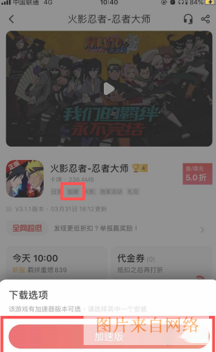 4、选择游戏,点击,下载弹窗显示“加速版”和“原版”,点击“加速版”按钮,如下图所示;