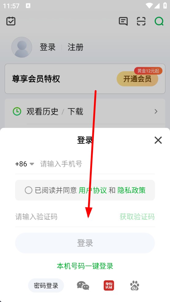 3、输入会员账号持有者的电话号码,以及验证码,登录后即可登录他人会员账号。